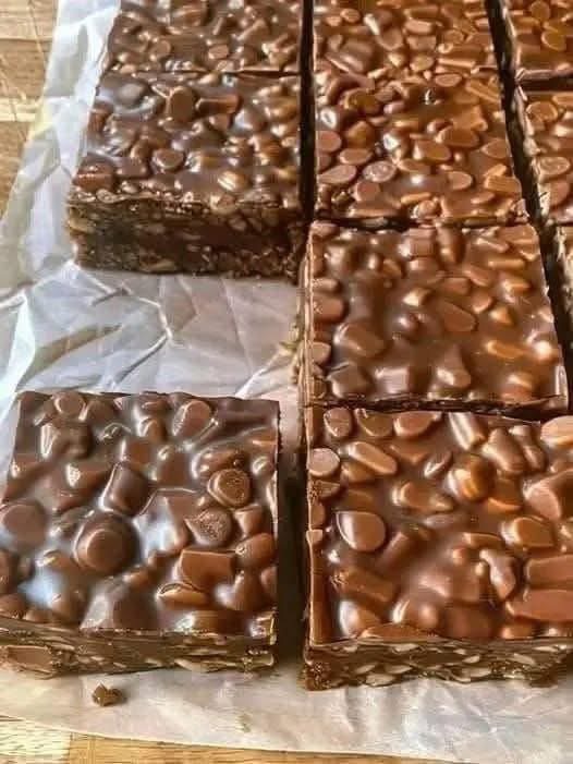 - Chill: Place the pan in the refrigerator for at least 2 hours, or until the chocolate topping is completely set and the base is firm.