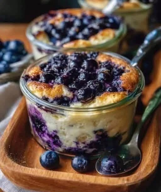 - Bake: Pour the batter into the prepared dish(es). Top with the remaining blueberries. Bake for 20-25 minutes .