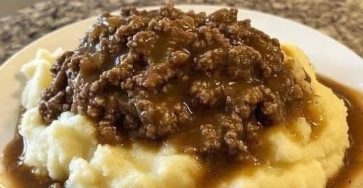 GROUND BEEF AND GRAVY OVER MASHED POTATOES A classic comfort food dish, also known as “Poor Man’s Stroganoff” or “Hamburger…